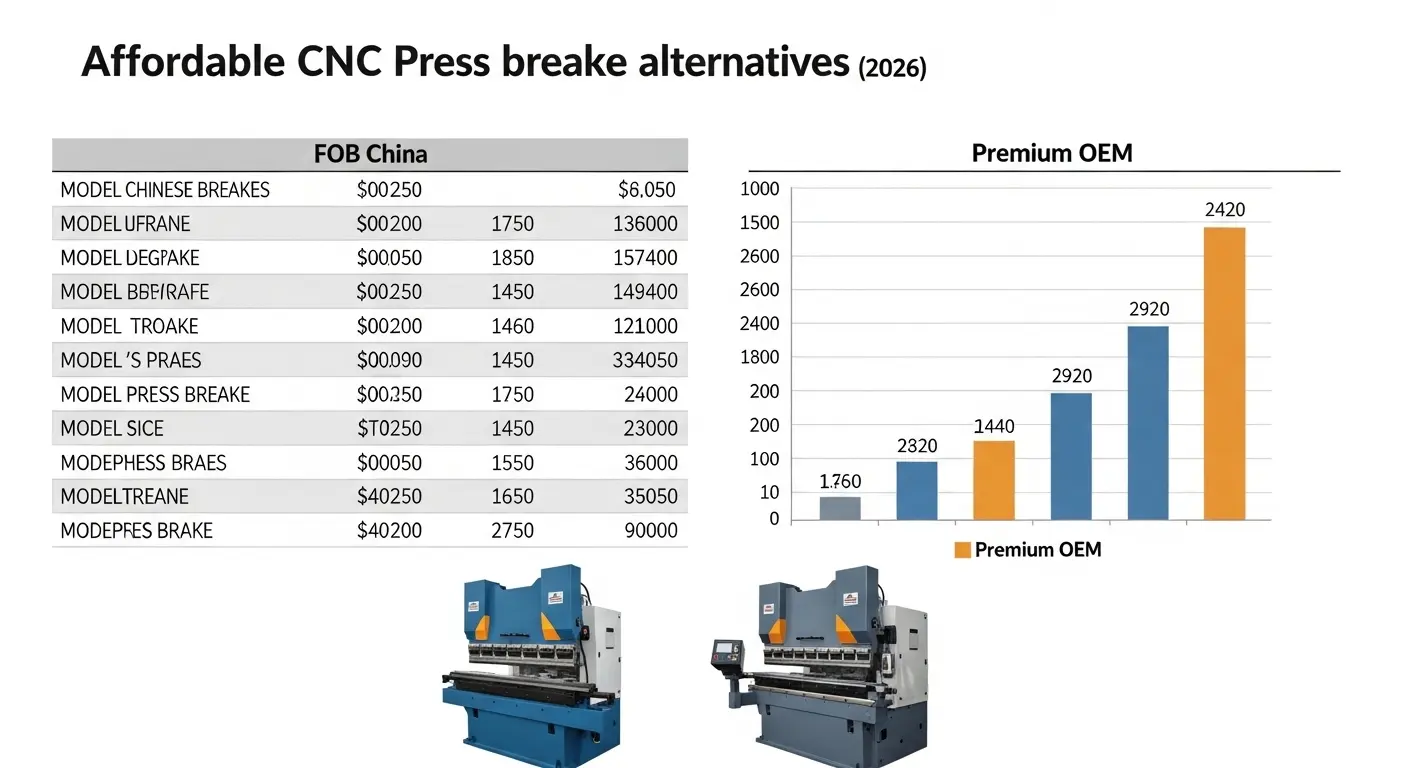 에서 2026, 저렴한 CNC 프레스 브레이크 대체품은 다음과 같이 책정됩니다. $16,500 받는 사람 $50,000 40–160톤 용량으로, 아마다 대비 8만 달러에서 30만 달러 규모입니다, 트럼프, 또는 동일한 사양의 Bystronic 동등물. 아래 표는 기계 유형별 검증된 가격 격차를 보여줍니다, 중국 전방 기준 가격 기준.