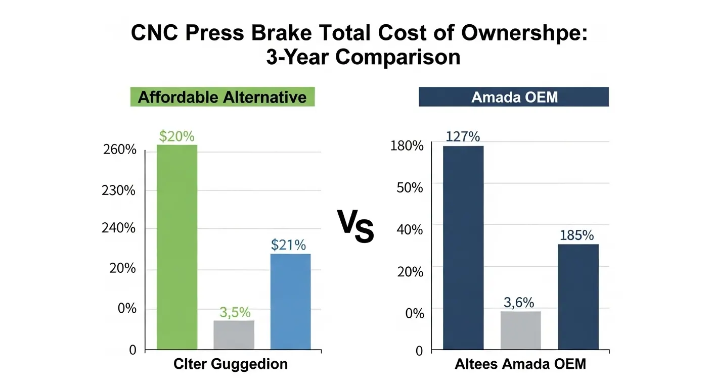 구매 가격은 비용 방정식의 일부에 불과합니다. 예비 부품, 컨트롤러 지원, 에너지 소비, 그리고 가동 중단 위험이 실제 3년 비용을 결정합니다. 절약하는 예산 기계야 $8,000 첫날부터 비용이 들 수 있습니다 $14,000 3년 넘게 부품 제작과 생산 시간 손실.