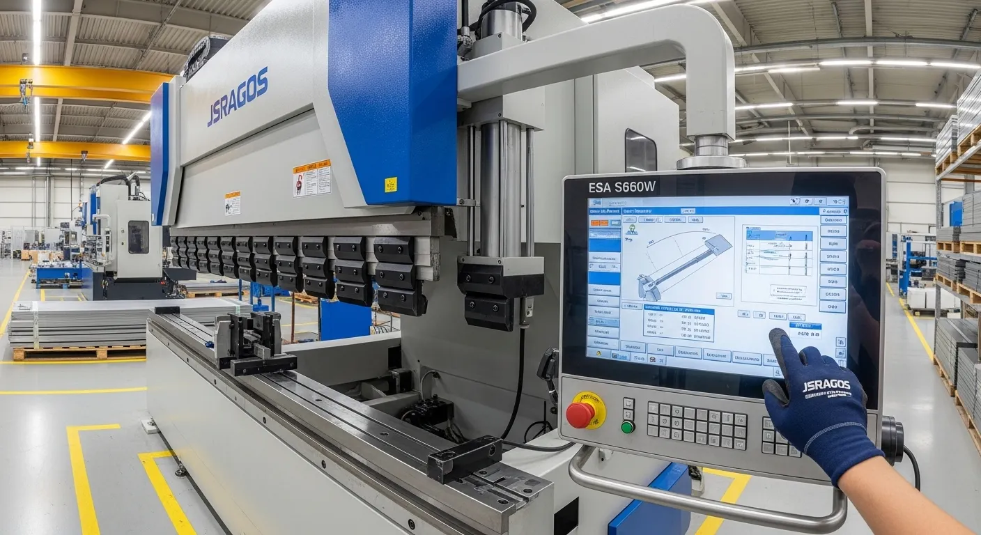 그 ESA S660W 컨트롤러 프레스 브레이크용 고성능 CNC 시스템입니다, 19인치 멀티터치 인터페이스와 윈도우 기반 아키텍처를 특징으로 합니다. At JSRAGOS, 이 컨트롤러를 통합하여 매끄러운 3D 그래픽 프로그래밍을 가능하게 합니다, 자동 벤드 시퀀싱, 그리고 실시간 각도 보정, 복잡한 금속 성형에서 최대 정밀도와 설치 시간 단축 보장.